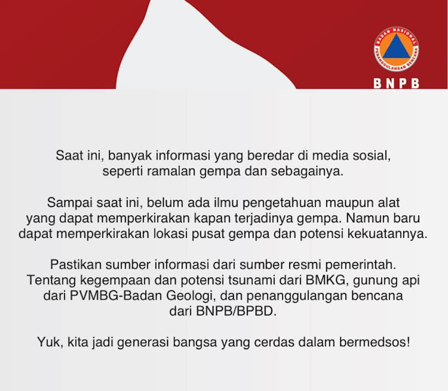 Sementara itu, Badan Meterologi, Klimatologi dan Geofisika (BMKG) telah menyatakan bahwa peringatan dini tsunami yang disebabkan gempa berakhir pada pukul 21.35 WIB. Gempa magnitudo 6.9 ini terjadi pada pukul 19.03 WIB yang berlokasi 147 km barat daya Sumur, Banten.